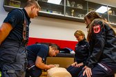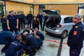 Der Vormittag begann mit Vorträgen zu den Themen Gefahrenbereiche und Großschadensereignisse, SvE (Stressverarbeitung nach belastenden Einsätzen), Inhalationstrauma, Verbrennungen, spezielle Anatomie, Unfallmechanik, Retten von Verletzten und Zusammenarbeit mit anderen Einsatzdiensten.