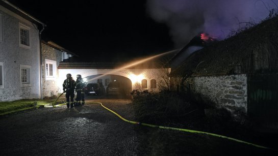 Ein 50-jähriger Bewohner wurde gegen 1:30 Uhr durch die extreme Hitze in seiner Wohnung geweckt. Der Mann konnte sich durch das Fenster über ein Vordach in Sicherheit bringen. Danach versuchte er, mehrere im Gutshof wohnende Nachbarn zu wecken, was jedoch misslang. Anschließend fuhr er mit seinem Auto zur Feuerwache Nord nach Linz und erstattete Anzeige. Mit Verletzungen unbestimmten Grades wurde er ins Kepler Uniklinikum eingeliefert. Rund 160 Einsatzkräfte der Feuerwehr bekämpften die Flammen und konnten gegen 3:30 Uhr Brandaus geben. Das Nebengebäude brannte vollständig aus. Die Ermittlungen laufen.