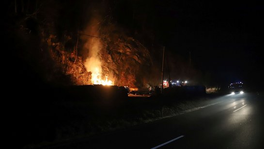 Wenige Stunden nach dem Einsatz im CoHotel wurden um 04:35 Uhr die Feuerwehr Steyregg gemeinsam mit der Feuerwehr Lachstatt zu einem Holzstoß Brand alarmiert.