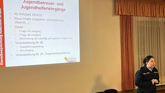 Neben einem Rückblick von dem Jahr 2024 folgten noch Hinweise zu den häufigsten Fehler und Änderungen im Bewerbswesen, Vorstellung des neuen Bewerbsablauf, Änderungen beim Feuerwehrjugendleistungsabzeichen in Gold, Informationen über die Lehrgänge für Betreuer*innen und Helfer*innen und abschließend noch die Terminvorschau für das heurige Jahr.
