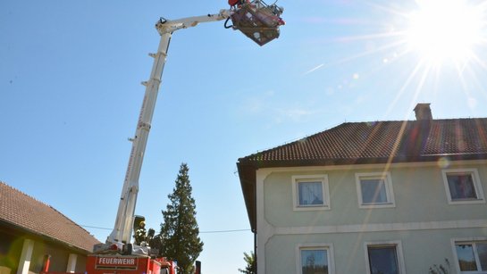 Die benötigte Teleskopmastbühne rückte laut Alarmplan aus Zwettl an der Rodl an und nahm an dieser fordernden Übung ebenfalls teil.