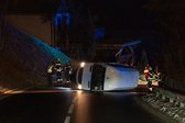 Die Freiwillige Feuerwehr Gramastetten richtete den Kleinbus mittels Seilwinde und Umlenkrolle wieder auf. Zusätzlich wurde ein Abschleppdienst zur weiteren Bergung des Fahrzeugs verständigt.