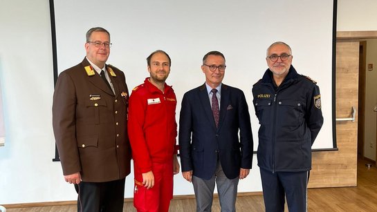 BEZIRK (15.10.2024) Im Zuge einer gemeinsamen Dienstbesprechung mit der Behörde und den Blaulichtorganisationen bedankten sich die jeweiligen Bezirkskommandanten für die jahrelange gute Zusammenarbeit und wünschen dem Bezirkshauptmann Dr. Paul Gruber im „Unruhestand“ alles Gute und viel Gesundheit.
