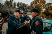 Nachdem dies mit Bravour gemeistert wurde, musste die Mannschaft einen Verkehrsunfall beüben, wobei hier ebenfalls auf die Arbeitsweise geachtet wurde. Hierbei gibt es verschiedene Funktionen innerhalb der Gruppe, wie z.B. das Absichern der Unfallstelle, den Aufbau des Brandschutzes und der Beleuchtung, usw.