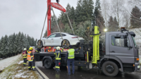 Ein Pkw kam aus bislang unbekannter Ursache von der Fahrbahn ab. Die Feuerwehr übernahm die Absicherung der Unfallstelle und führte gemeinsam mit dem Kran der Freiwilligen Feuerwehr Bad Leonfelden die Fahrzeugbergung durch.