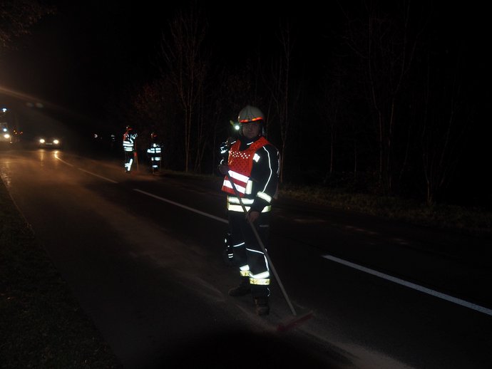 VEITSDORF 17.11. 2015 Eine Ölspur mussten die Feuerwehren Veitsdorf und Altenberg binden, die sich auf dem Güterweg Veitsdorf bis über die Weitrager…